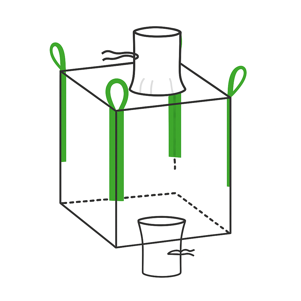 Το άνω και κάτω μέρος κάθε μεγασάκου μπορεί να διαφέρει ανάλογα με τις απαιτήσεις του πελάτη και το είδος του προϊόντος.